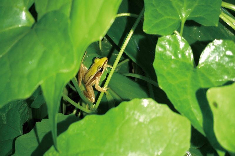 清澈山泉蜿蜒而生的生態池,臺北赤蛙嘰嘰鳴唱;鳳蝶在百花園中曼妙起舞;魚蝦優游在莎草裡捉迷藏…
