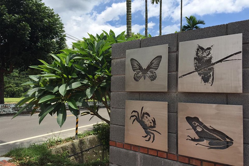 入門新砌的樸石磚牆,由台北赤蛙、領角鴞、黃裳鳳蝶、屏東澤蟹等四種特有生物圖騰,交錯的一個田字,讓一進門的訪客認識銘泉, 傳達夫妻的信仰,就是「農田是食物的產地,同時是生物的棲地」,兩人窮盡氣力,要讓銘泉的田裡留下各種生命的足跡。